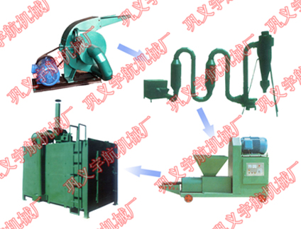 木炭機(jī)設(shè)備的制炭流程是將:樹(shù)枝,秸稈,稻草,花生殼,樹(shù)干,棉花秸稈,茶籽殼,果殼,雜草,樹(shù)葉等含有可以生產(chǎn)木炭的生物質(zhì)纖維的原料填入,經(jīng)木屑粉碎機(jī)粉碎成10mm之內(nèi)的顆粒狀,經(jīng)烘干機(jī)烘干使之含水份含量在12%以?xún)?nèi),入制棒機(jī)經(jīng)高溫,高壓使之成型(不加任何添加劑)后放入炭化爐(自建土窯)進(jìn)行炭化,制成成品木炭。機(jī)制木炭機(jī)以環(huán)保節(jié)能為理念進(jìn)行發(fā)展,機(jī)制木炭機(jī)也是一款環(huán)保型設(shè)備。
